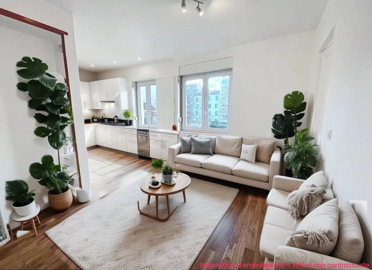 Le bien se compose d’une cuisine ouverte sur un séjour orienté plein Sud, bénéficiant de deux grandes fenêtres qui apportent une belle lumière naturelle.