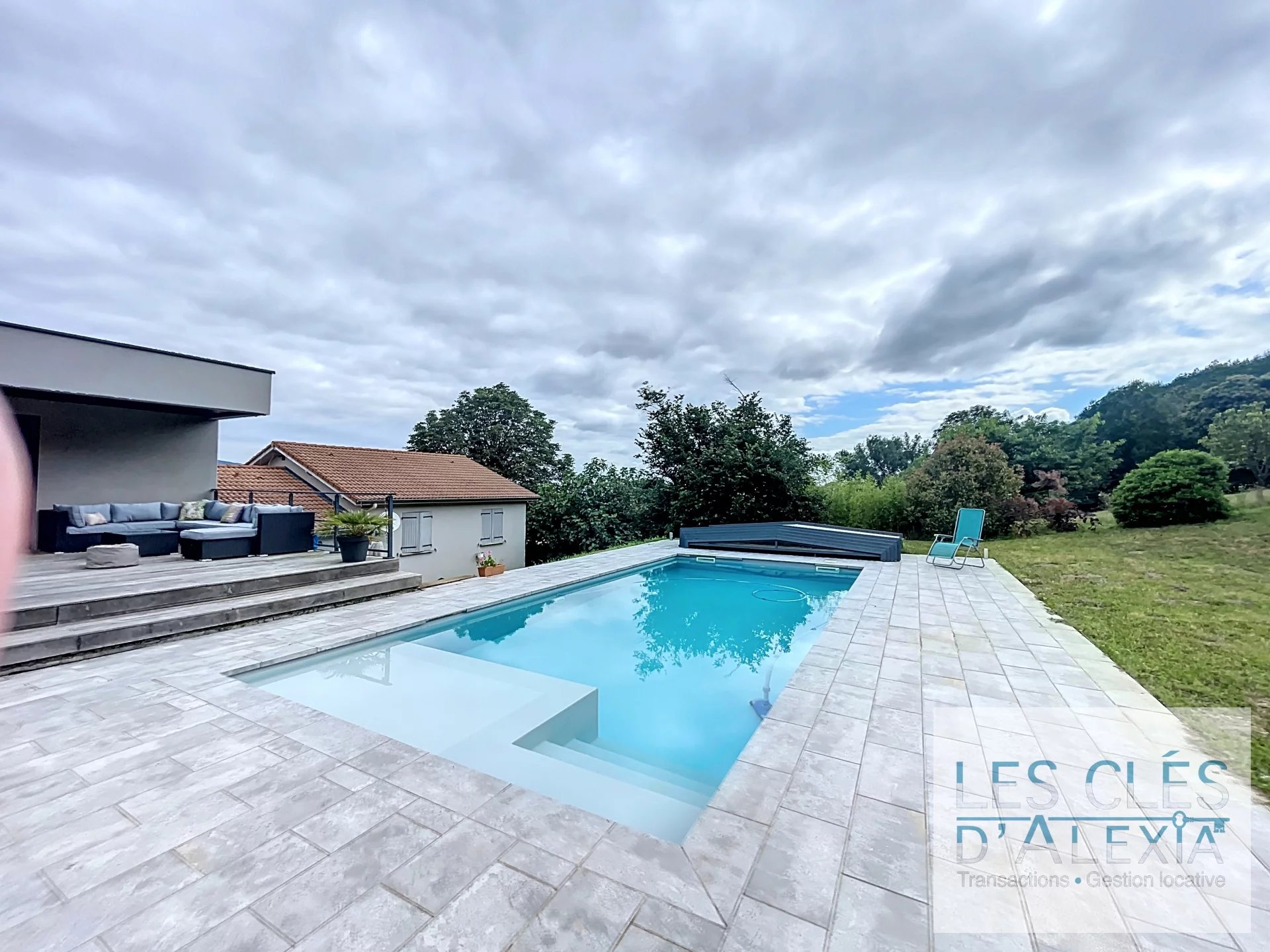 Le terrain de 6000 m², joliment arboré, accueille une magnifique piscine au sel, parfaite pour profiter des journées ensoleillées.